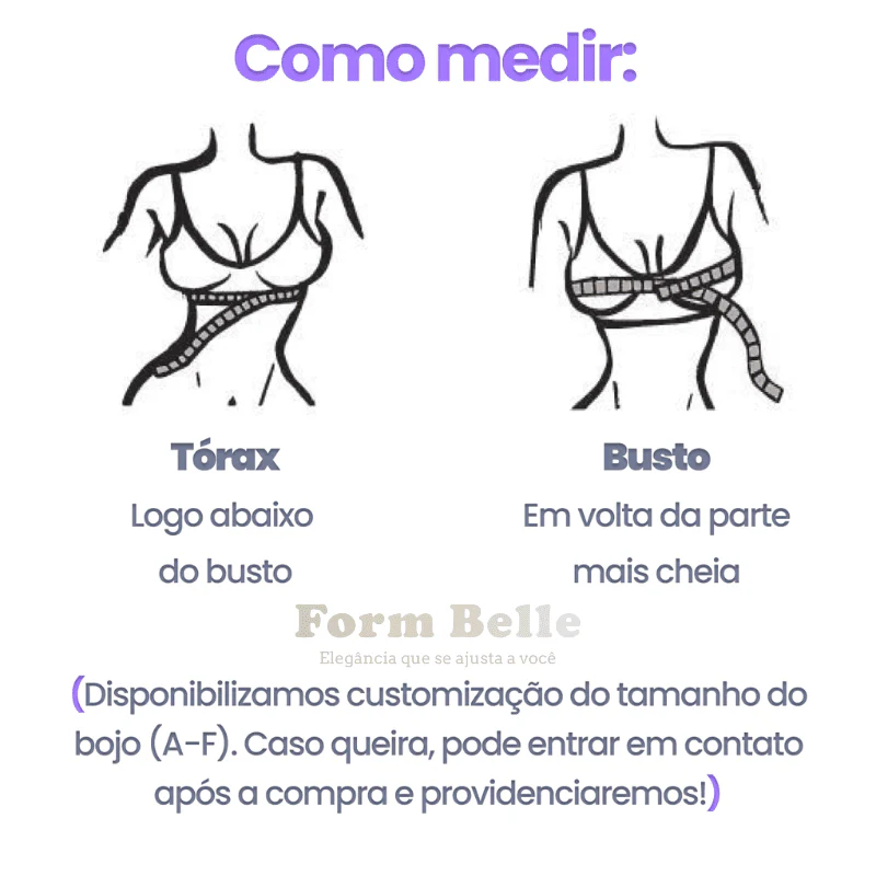 Use como referência o tamanho que você já usa de sutiã: P (36-38), M (40-42), G (44-46) e GG (48-50). Se estiver na dúvida entre dois tamanhos, recomendamos escolher o maior.
